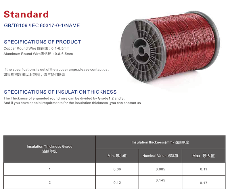 漆包圓線是指在電工圓銅桿或電工圓鋁桿經(jīng)圓形模具擠壓或拉拔后退火處理的導(dǎo)體上,根據(jù)客戶要求,涂覆所需的溫度指數(shù)及相容性的絕緣漆,經(jīng)烘焙處理后,使絕緣漆和導(dǎo)體形成一整體的繞組線。該產(chǎn)品應(yīng)用于變壓器、發(fā)電機(jī)、電機(jī)、電抗器及多種電氣設(shè)備線圈的繞組。